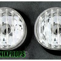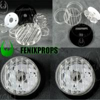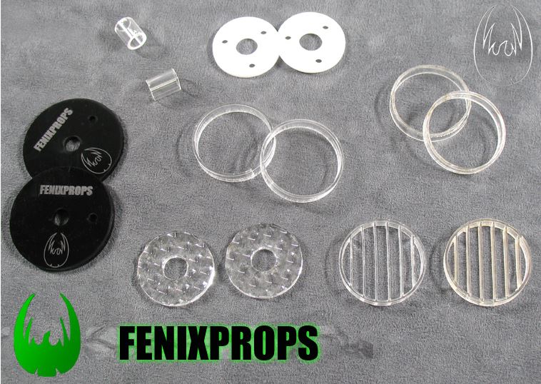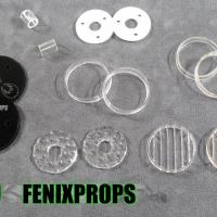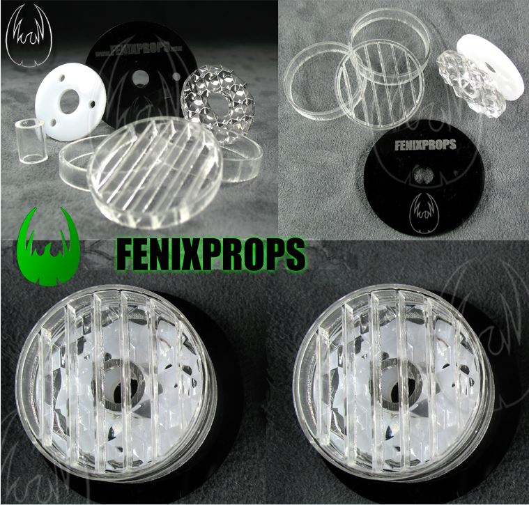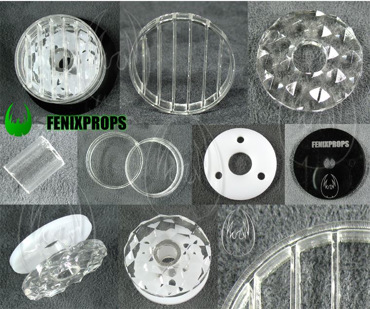 The prismatic acrylic and the white translucent circles have a hole to fit the tube.