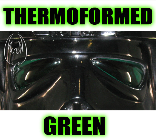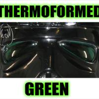 Lenses thermoformed from 1 mm green see-through acrylic.