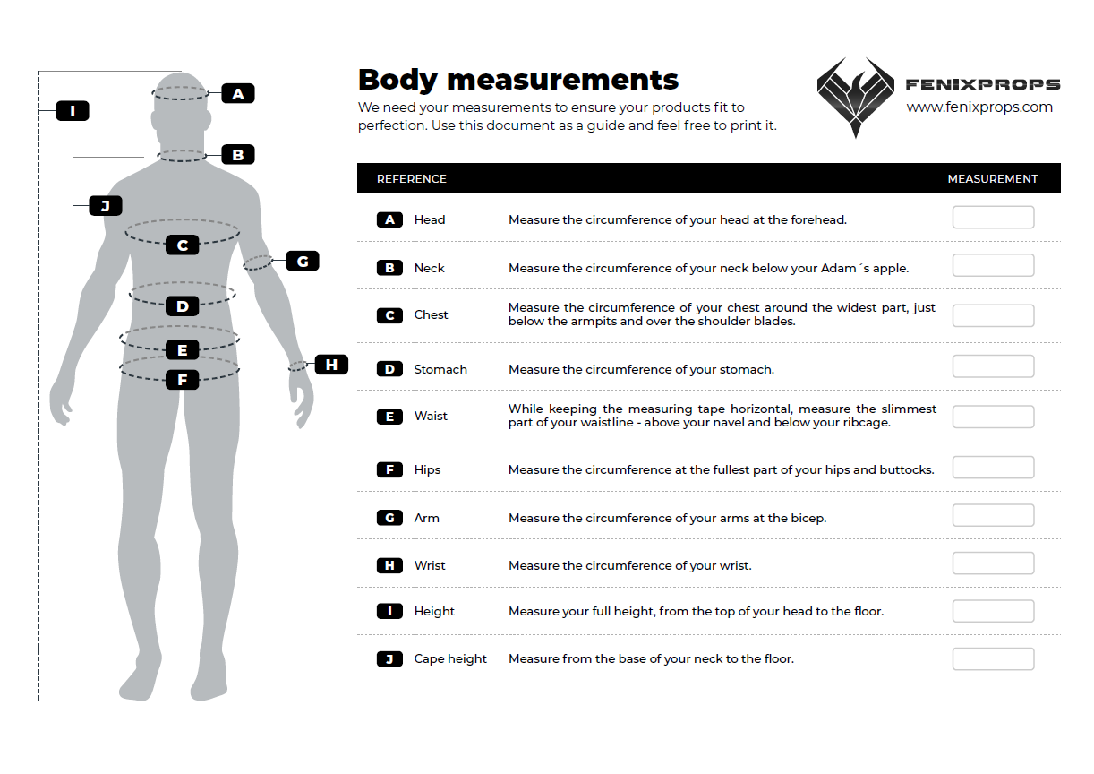Except for the Codpiece, which is a one-size fits all item, Gloves and Suit are available in standard sizes for immediate fit, or meticulously tailor-made to your exact measurements—ensuring every piece is as unique and precise as the individual who wears it.