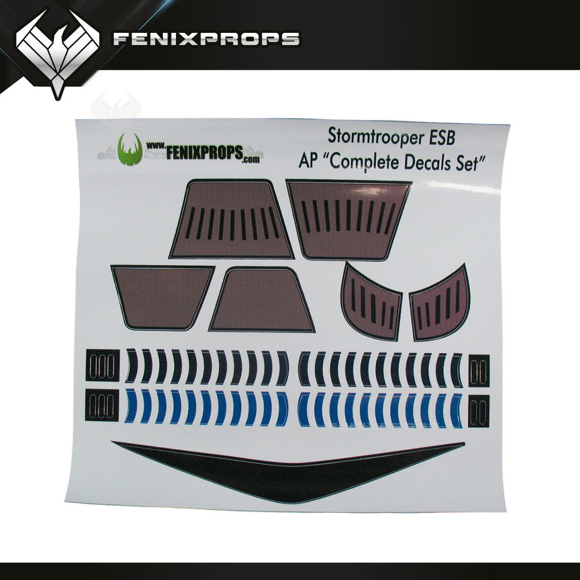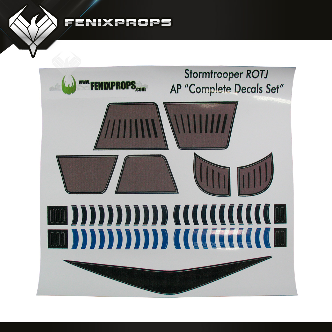 Accurate recreation of the Stormtrooper Decal Set from the Original Trilogy, designed for a screen-accurate appearance, ideal for demanding cosplayers, collectors, and high-end displays.