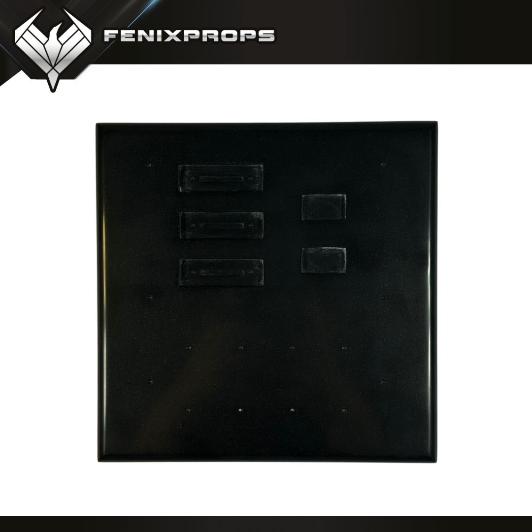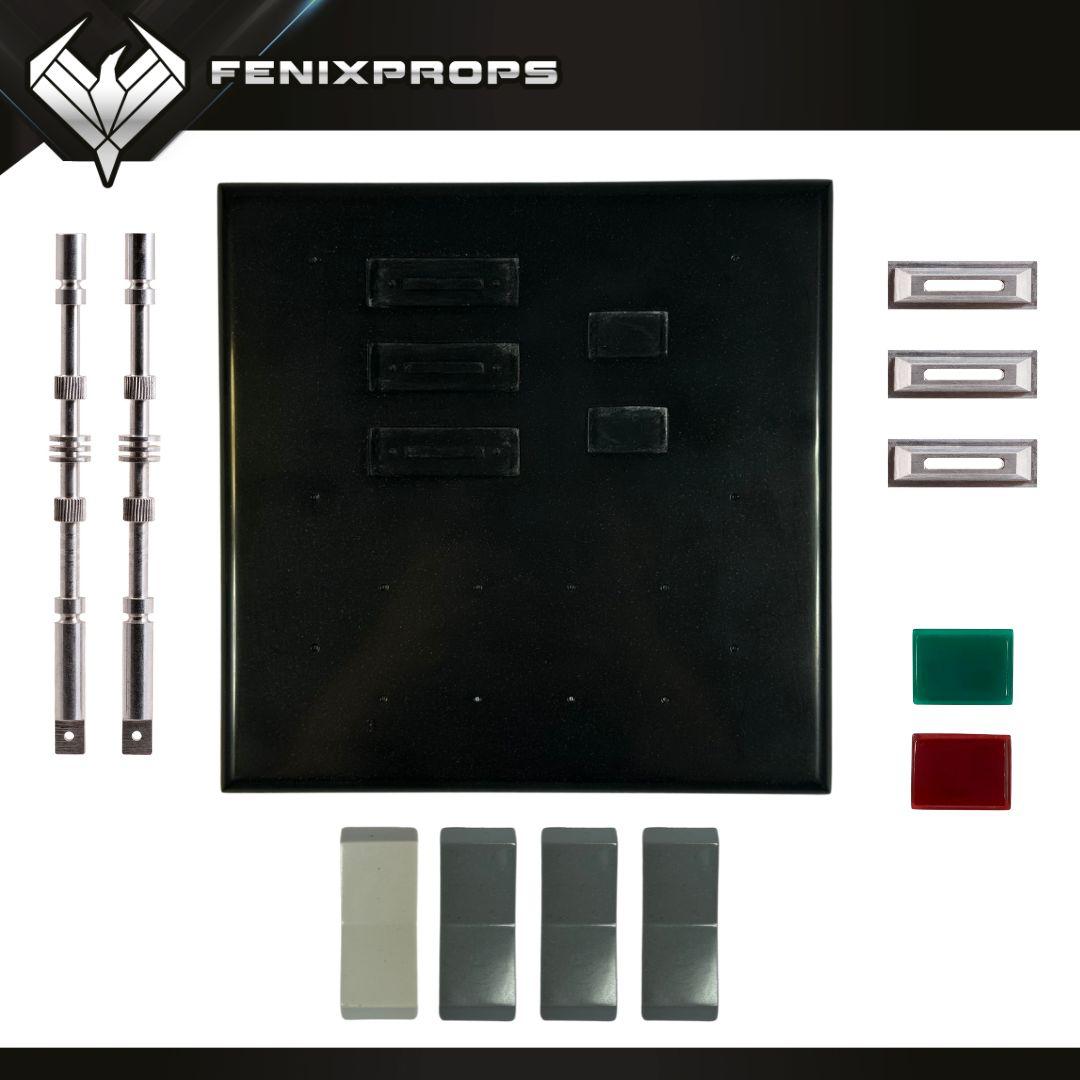 Green and red colored resin panels that are ready to use, made from resin replicas of the original found parts that were used in the movie.